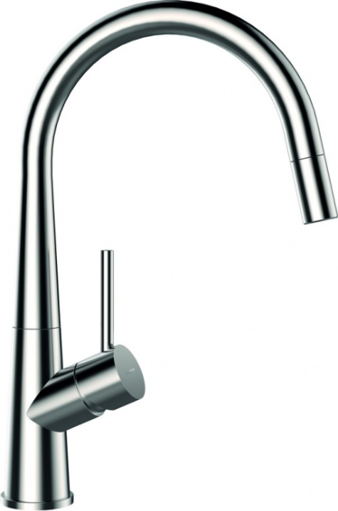 Функционал-обратный клапан. Стильный смеситель из нержавеющей стали. Поворотный на 360° излив позволяет использовать смеситель наостровной кухне.