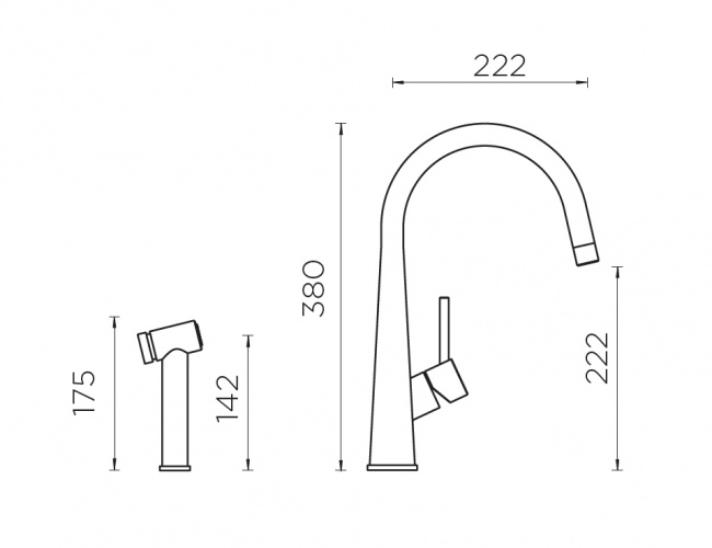 Стильный смеситель из нержавеющей стали. Поворотный на 360° излив и отдельностоящий душ — смесительудобно использовать на островной кухне. Легкое подключение гибкими шлангами длиной 600 мм с гайкой 3/8”. Отверстие для монтажа 35 мм.