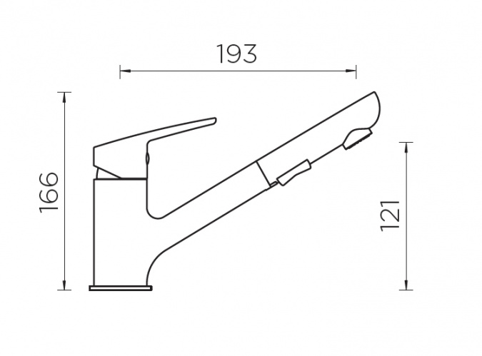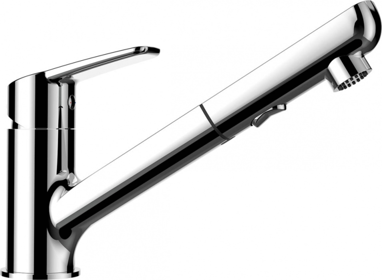 Выдвижной излив. Диапазон поворота излива 360°. Переключатель на режим струи или душа.