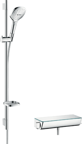 Душевая система внешнего монтажа 120 с термостатом Ecostat Select и штангой 90 см состоит из: - ручной душ, - термостат для душа, - душевая штанга, - держатель, - мыльница, - шланг для душа/ Размер душевого диска: 120 мм, удобное переключение типов струи с помощью кнопки Select, тип струи ручной душ: Rain, RainAir, Whirl, со стороны душа упорный подшипник, предотвращающий перекручивание душевого шланга, максимальный расход воды при давлении 3 бара: 13,8 л/мин, профиль вертикальной трубки: круглая, диаметр штанги: 22 мм, держатель ручного душа регулируется в пределах 90°, поворачивается вправо и влево, перемещается вверх и вниз, для установки на соединительную резьбу G ¾ . Есть вариант в бело-хромовом цвете - арт. 27039400.