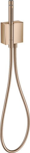 Душевой набор состоит из ручного душа-«палочки», держателя, держателя для душа, шланга для душа, встроенная функция держателя, максимальный расход воды при давлении 3 бара: 17,7 л/мин, с клапаном обратного тока воды, гайка шланга: для душевых шлангов с цилиндрической гайкой с обеих сторон. Есть варианты в других цветах: - полированное красное золото - арт. 46520300 - полированный черный хром - арт. 46520330 - полированное золото - арт. 46520990