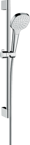 Душевой набор 1jet со штангой 65 см состоит из: - ручной душ, - душевая штанга, - шланг для душа, - ползунок. Размер душевого диска: 110 мм, тип струи: Rain, со стороны душа упорный подшипник, предотвращающий перекручивание душевого шланга, угол наклона может изменяться до 45°, максимальный расход воды при давлении 3 бара: 16 л/мин, диаметр штанги: 22 мм, профиль вертикальной трубки: круглая, хромированные настенные крепления из пластика, настенный монтаж: крепление с помощью шурупов.