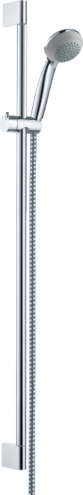 Душевой набор Vario со штангой 90 см состоит из: - ручной душ, - душевая штанга, - шланг для душа, - ползунок. Размер душевого диска: 85 мм, тип струи: обычная, Vario, переключение типов струи с помощью вращающегося душевого диска, держатель ручного душа регулируется в пределах 90°, поворачивается вправо и влево, перемещается вверх и вниз, максимальный расход воды при давлении 3 бара: 17 л/мин, диаметр штанги: 22 мм, профиль вертикальной трубки: круглая, хромированные настенные крепления из пластика, настенный монтаж: крепление с помощью шурупов.
