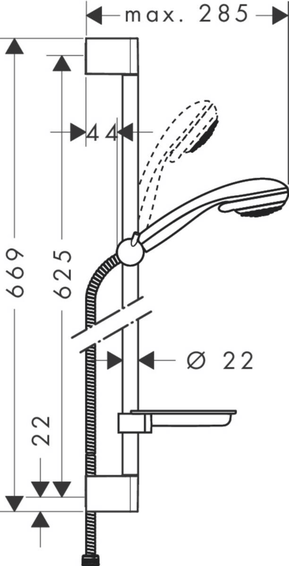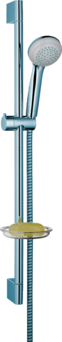 Душевой набор Vario со штангой 65 см и мыльницей состоит из: - ручной душ, - душевая штанга, - шланг для душа, - ползунок, - мыльница. Размер душевого диска: 85 мм, тип струи: обычная, Vario, переключение типов струи с помощью вращающегося душевого диска, держатель ручного душа регулируется в пределах 90°, поворачивается вправо и влево, перемещается вверх и вниз, максимальный расход воды при давлении 3 бара: 17 л/мин, диаметр штанги: 22 мм, профиль вертикальной трубки: круглая, хромированные настенные крепления из пластика, настенный монтаж: крепление с помощью шурупов.