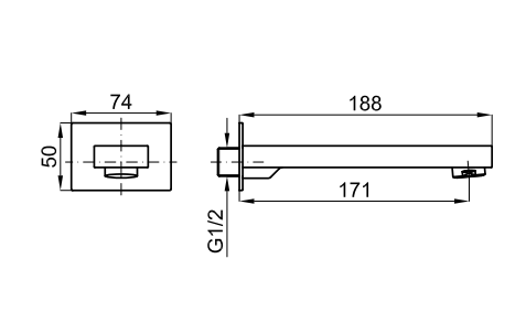 Излив для ванны. Пропускная способность при давлении 3 бара 22 л/мин.