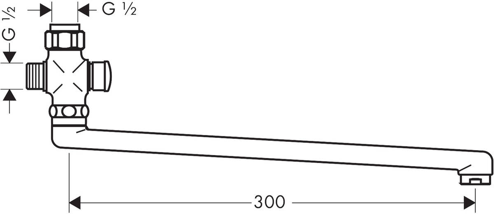Длинный поворотный излив, 300 мм, с переключателем вакуумного типа, подходит для монтажа на однорычажном смесителе для душа.