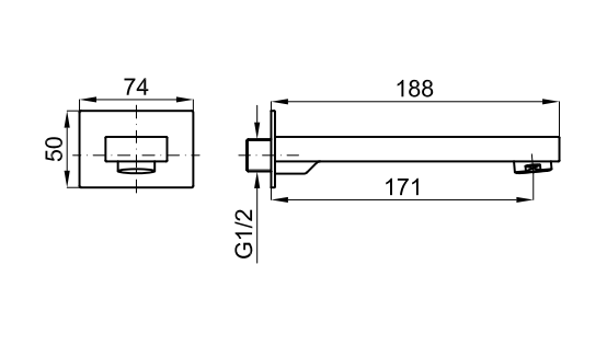 Излив для ванны. Пропускная способность при давлении 3 бара 22 л/мин.