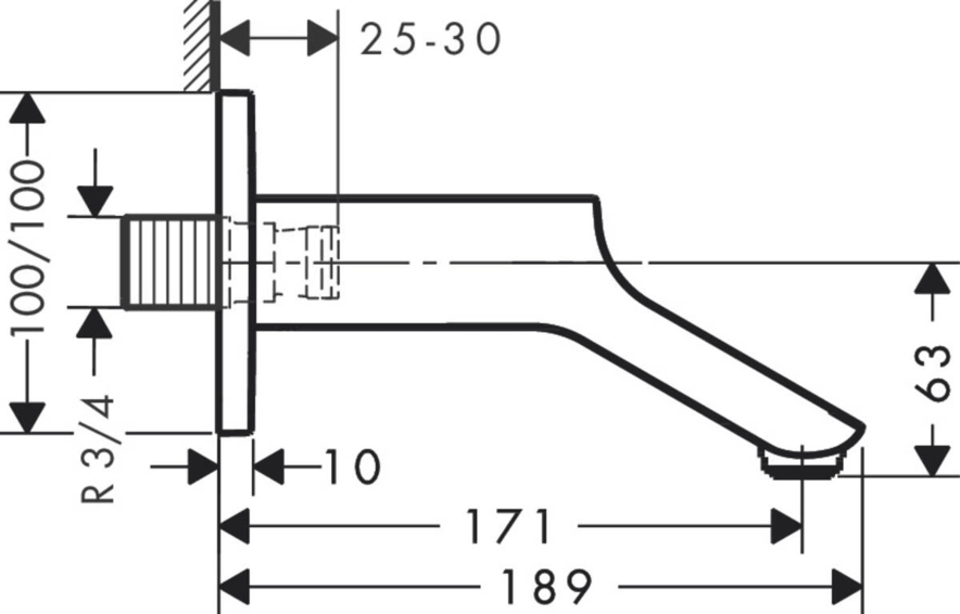 Излив на ванну, выступ 171 мм, максимальный расход воды при давлении 3 бара: 21 л/мин, тип струи: обычная струя.