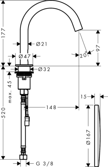 Высота смесителя (мм): 177