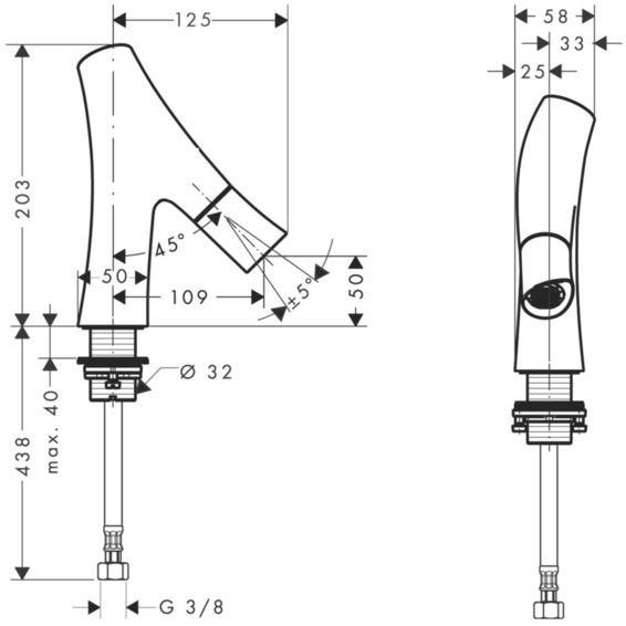 Кран 50 без сливного набора AXOR STARCK ORGANIC 12110000