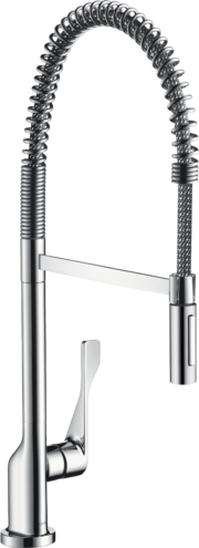 Кухонный смеситель, однорычажный, Semi-Pro, ComfortZone 230, угол поворота излива: 360°, обычная и душевая струя, фиксируемая душевая струя, переключение струи в исходное положение нажатием кнопки, максимальный расход воды при 3 бар: 9 л/мин, керамический узел смешивания, соединительные шланги G ⅜, регулируемое ограничение температуры, встроенный клапан обратного тока воды, подходит для проточных водонагревателей.