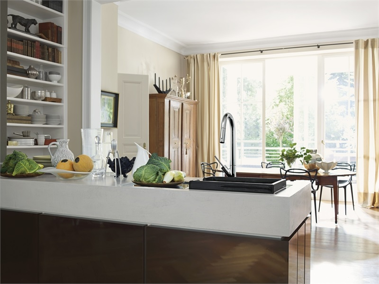 Смесители для кухни AXOR обладают высочайшей функциональностью, например, выдвижные души с двумя типами струи или с произвольным размещением рукояток. Благодаря области поворотного излива до 360° они обеспечивают большую свободу движения и эргономичность во время работы за мойкой – и являются иконами дизайна в вашей кухне.