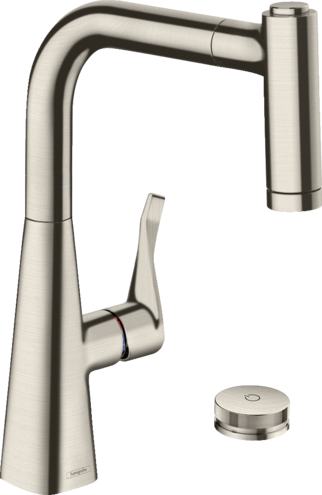 Кухонный смеситель, однорычажный, 220, с вытяжным душем,состоит из: кухонного смесителя, на 2 отверстия, блока управления, шлангового ящика, ComfortZone 220, диапазон поворота регулируется в 2 шага до 110 ° или 150 °, гибкое расположение органов управления смесителем, требуется 2 отверстия под смеситель Ø 35 мм, нажатие блока управления: интуитивно понятная функция запуска и остановки потока воды, поворот: автоматический слив, ламинарная струя, струя для душа, блокируемая душевая лейка, струя возвращается автоматически при закрытии ручки, магнитная опора для душа MagFit, размер подключения: DN15, максимальный расход при давлении 3 бара: 7 л / мин, керамический картридж, тип подключения: G ⅜ соединения, встроенный обратный клапан, подходит для проточных водонагревателей, sBox для бесшумной, плавной и защищенной проводки шлангов в шкафу под столешницей, длина надставки до 76 см. Есть вариант в в цвете нержавеющая сталь - арт. 73805800