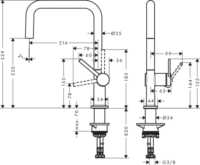 Кухонный смеситель однорычажный, ComfortZone 220, угол поворота излива: регулировка на 4 уровня 60°, 110°, 150° или 360°, ламинарная струя, максимальный расход воды при давлении 3 бара: 9 л/мин, керамический узел смешивания, соединительные шланги G ⅜, регулируемое ограничение температуры, подходит для проточных водонагревателей. Есть варианты в других цветах: - черный матовый - арт. 72806670 - цвет нержавеющая сталь - арт. 72806800