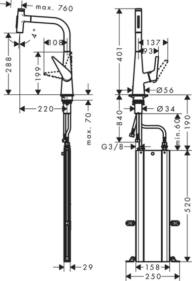 Высота смесителя (мм): 401