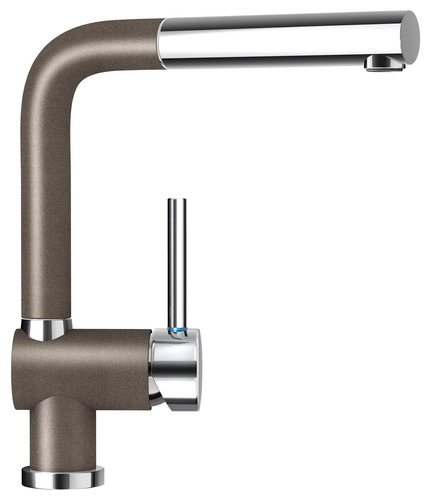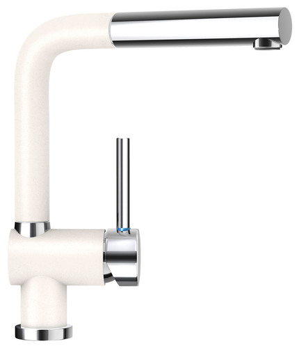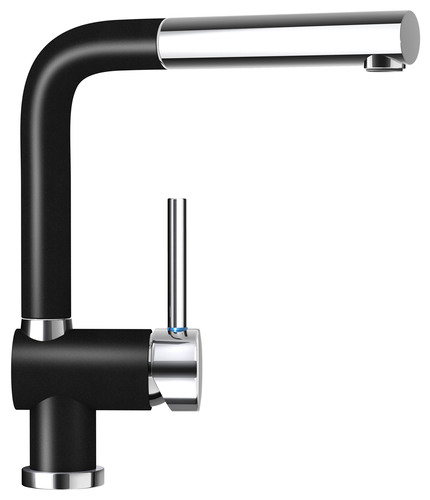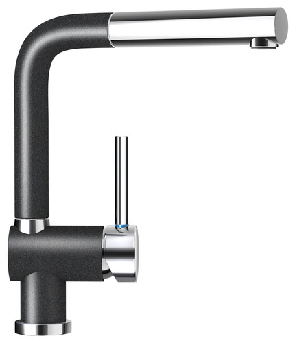 Высокий выдвижной излив . Минималистский дизайн. Прекрасное цветовое сочетание с мойками из материала CRISTADUR®.