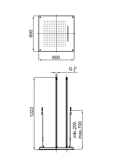 Распылитель с функцией дождевого душа и каскада, подключение 1/2". Пропускная способность при давлении 3 бара со смешанной водой: дождевой душ: 16л/мин и каскад: 22 л/мин.