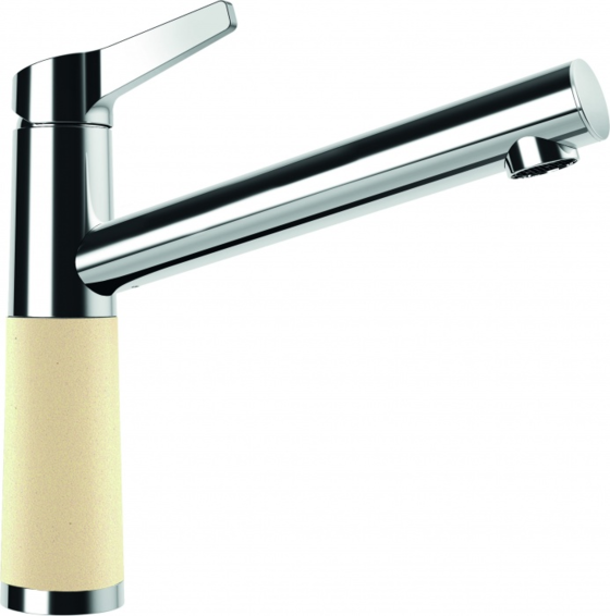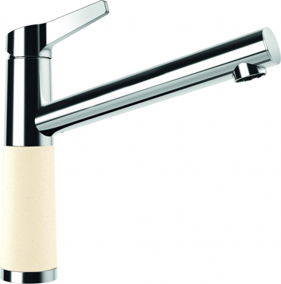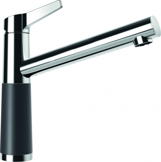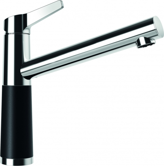 Излив вращается на 360°. Вставка на корпусе выполнена из материала CRISTADUR® или CRISTALITE®:максимальное совпадение по цвету смесителя и мойки.