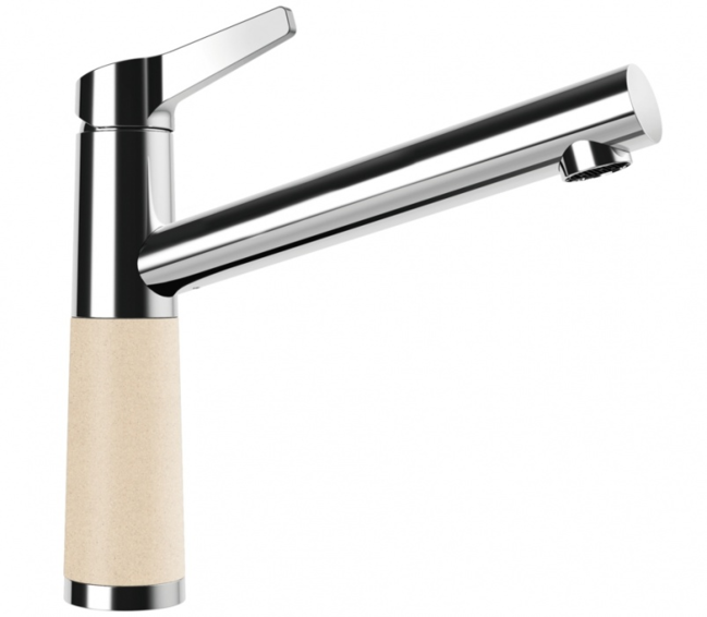 Излив вращается на 360°. Вставка на корпусе выполнена из материала CRISTADUR® или CRISTALITE®:максимальное совпадение по цвету смесителя и мойки.