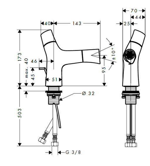 Смеситель для биде, выступ 143 мм, аэратор с шарнирным соединением, обычная струя, расход воды в режиме Booster: 7,2 л/мин, регулируемое ограничение температуры, раздельная регулировка температуры / объема воды, изолированная подача воды, подходит для проточных водонагревателей, класс шума: I. Есть варианты в разных цветах с полированной и шлифованной обработкой.