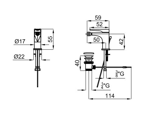 Однорычажный смеситель для биде с керамическим картриджем ᴓ 35 мм. Подключение 3/8", длина шлангов 390 мм, автоматический клапан слива и аэратор "plus". Пропускная способность при давлении 3 бара 6 л/мин.