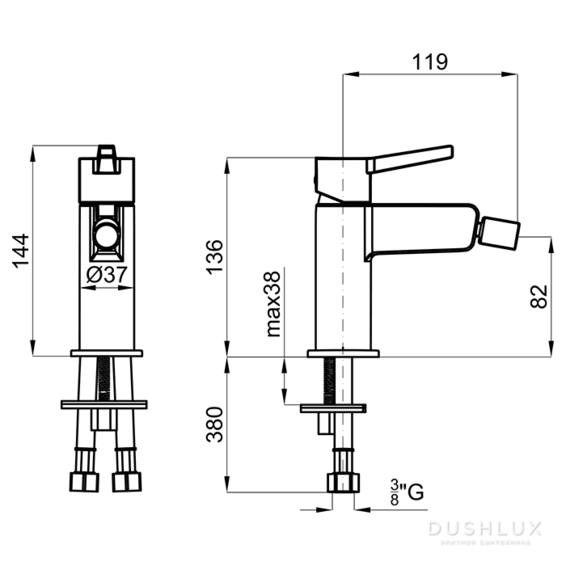 Однорычажный смеситель для биде с керамическим картриджем ᴓ 25 мм. Подключение 3/8", длина шланга 400 мм и плоский аэратор. Пропускная способность при давлении 3 бара 5 л/мин.