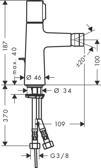 Смеситель для биде, слив/перелив, аэратор с шарнирным соединением, тип струи: обычная струя, максимальный расход воды при давлении 3 бара: 5 л/мин, картридж Select с регулировкой температуры, регулируемое ограничение температуры, подходит для проточных водонагревателей, материал сливного набора: металл.
