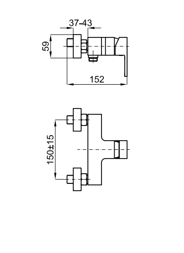 Наружный однорычажный смеситель для душа с керамическим картриджем ᴓ 35 мм. Подключение 1/2", расстояние между выходами 150+/-15 мм. Пропускная способность при давлении 3 бара 20,08 л/мин.