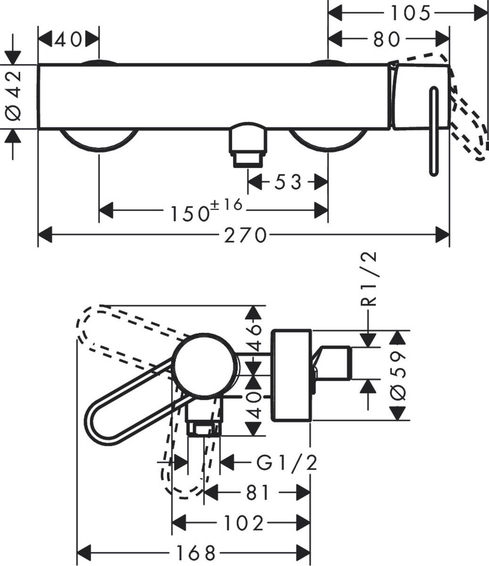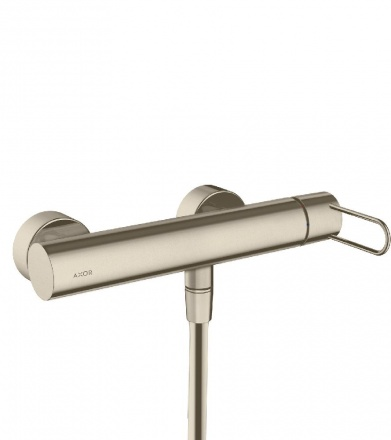 Смеситель для душа внешнего монтажа, с рукояткой-петлей состоит из однорычажного смесителя для душа, 1 потребитель, вид соединения: S-образные эксцентрики, межосевое подключение: 150 мм ± 16 мм, максимальный расход воды при давлении 3 бара: 15 л/мин, керамический узел смешивания, мин. рабочее давление: 1 бар, макс. рабочее давление: 10 бар, регулируемое ограничение температуры, клапан обратного тока воды,с шумопоглотителем, подходит для проточных водонагревателей, шланговое подсоединение DN15. Есть варианты в разных цветах с полированной и шлифованной обработкой.