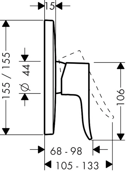 Смеситель для душа, однорычажный, 1 потребитель, вид соединения: скрытый монтаж, максимальный расход воды при давлении 3 бара: 29 л/мин, керамический узел смешивания, мин. рабочее давление: 1 бар, макс. рабочее давление: 10 бар, регулируемое ограничение температуры, с шумопоглотителем.