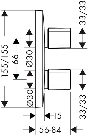 Трехвыводной смеситель, расход воды через верхний вывод: 30 л/мин, расход воды через нижний вывод: 36 л/мин, 3 вывода, возможно одновременное включение 3 выводов (душей).