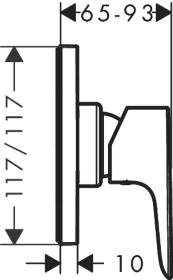 Смеситель для душа, однорычажный, 1 потребитель, вид соединения: скрытый монтаж, максимальный расход воды при давлении 3 бара: 28,7 л/мин, мин. рабочее давление: 1 бар, макс. рабочее давление: 10 бар.