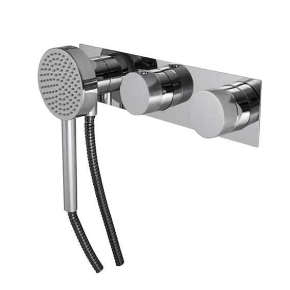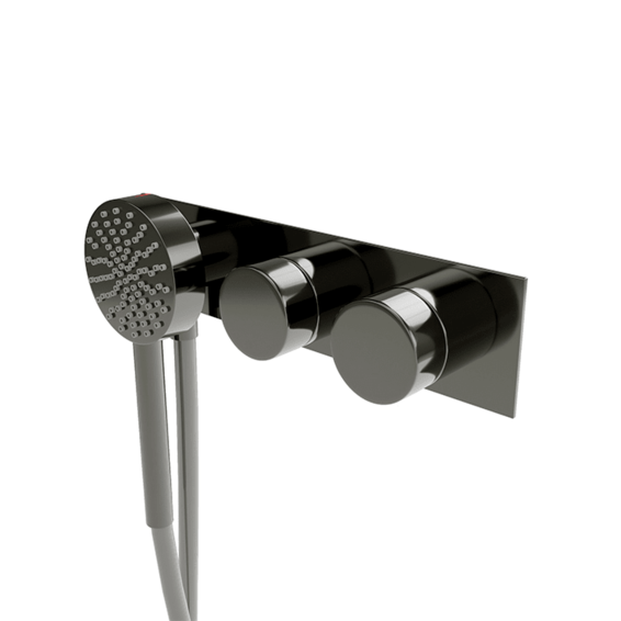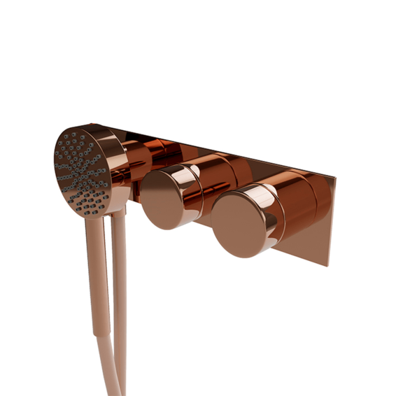 Наружная часть термостата с подводом воды и магнитным держателем. В комплект входит гибкий шланг и ручной душ. Есть варианты в разных цветах: - цвет титан - арт. 100190646 - цена: 784400 тг. - цвет медь - арт. 100190680 - цена: 784400 тг. Дополнительно укомплектовывается внутренней частью термостата скрытого монтажа на 2 выхода. Наружную часть нужно заказывать отдельно - арт. 100190368 - цена: 517280 тг.