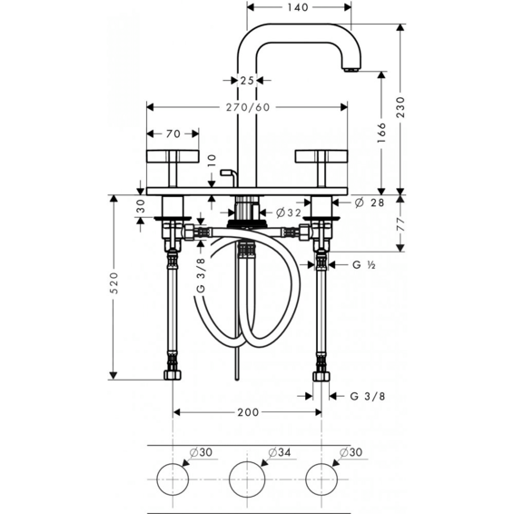 Смеситель для раковины 170 на 3 отверстия AXOR CITTERIO 39134000