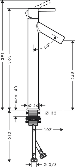 Высота смесителя (мм): 363