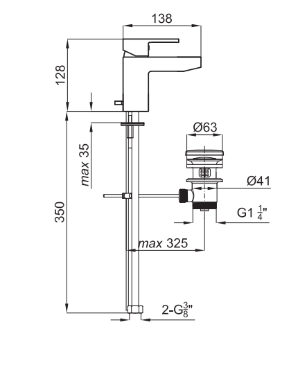 Однорычажный смеситель для раковины с керамическим картриджем ᴓ 35 мм. Подключение 3/8", длина шлангов 370 мм, с автоматическим клапаном слива и аэратором "plus". Пропускная способность при давлении 3 бара 12,01 л/мин.