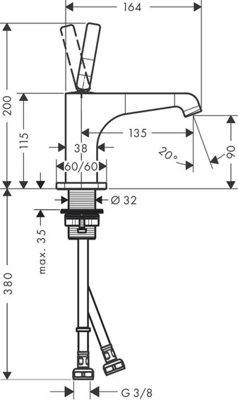 Смеситель для раковины состоит из однорычажного смесителя для раковины, слив/перелива, ComfortZone 90, выступ 135 мм, тип струи: ламинарная струя, максимальный расход воды при давлении 3 бара: 5 л/мин, керамический узел смешивания джойстикового типа, подходит для проточных водонагревателей, вид соединения: соединительные шланги G ⅜, сливной набор без опции перекрытия стока. Есть варианты в разных цветах с полированной и шлифованной обработкой.