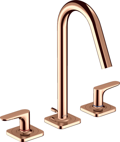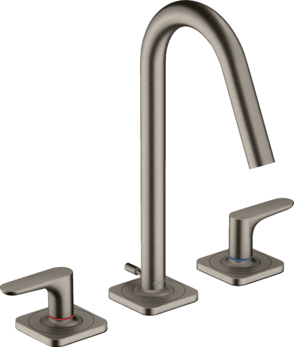 Смеситель для раковины с рычаговыми рукоятками, с отдельными розетками, со сливным гарнитуром, состоит из смесителя для раковины, на 3 отверстия, слив/перелива, ComfortZone 160, выступ 135 мм, тип струи: обычная струя, максимальный расход воды при давлении 3 бара: 5 л/мин, с керамическими вентилями для горячей/холодной воды 90°, подходит для проточных водонагревателей, вид соединения: соединительные шланги G ⅜, донный клапан, 1¼’. Есть варианты в разных цветах с полированной и шлифованной обработкой.