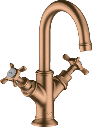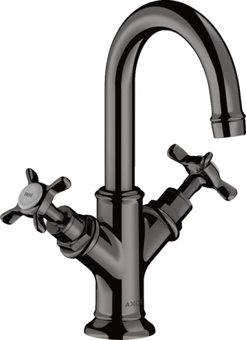 Смеситель для раковины, с двумя рукоятками, с крестообразными рукоятками, для гостевой раковины, со сливным гарнитуром, ComfortZone 160, выступ 117 мм, угол поворота излива: 120°, тип струи: ламинарная струя, максимальный расход воды при давлении 3 бара: 5 л/мин, с керамическими вентилями для горячей/холодной воды 90°, подходит для проточных водонагревателей, вид соединения: соединительные шланги G ⅜, донный клапан, 1¼’. Есть варианты в разных цветах с полированной и шлифованной обработкой.