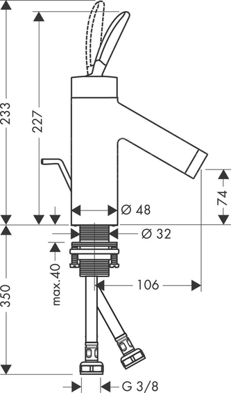 Смеситель для раковины состоит из однорычажного смесителя для раковины, слив/перелива, ComfortZone 70, выступ 106 мм, тип струи: обычная струя, максимальный расход воды при давлении 3 бара: 5 л/мин, керамический узел смешивания джойстикового типа, подходит для проточных водонагревателей, вид соединения: соединительные шланги G ⅜, донный клапан, 1¼’.