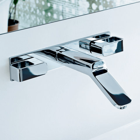 Смеситель для раковины состоит из смесителя для раковины на 3 отверстия, настенного, для скрытого монтажа, слив/перелива, выступ 168 мм, тип струи: обычная струя, максимальный расход воды при давлении 3 бара: 5 л/мин,с керамическими вентилями для горячей/холодной воды 90°, подходит для проточных водонагревателей, вид соединения: скрытая часть, сливной набор без опции перекрытия стока.