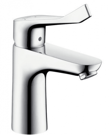 Смеситель для раковины 100, способ монтажа: горизонтальный, излив: фиксированный, количество монтажных отверстий: 1, расход воды при давлении 3 бара: 5 л/мин, с донным клапаном и длинным рычагом, подходит для проточных водонагревателей, материал: латунь, цвет: хром.