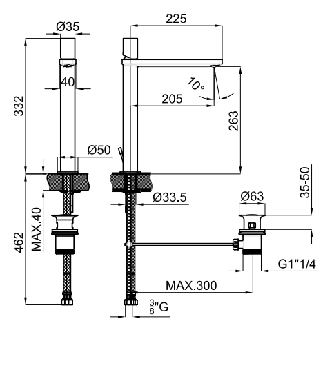 Однорычажный смеситель для раковины с высоким изливом и керамическим картриджем ᴓ 25 мм. Подключение 3/8", длина шланга 462 мм. Автоматический сливной клапан и аэратор "plus". Открытие на холодную. Пропускная способность при давлении 3 бара 4,27 л/мин.