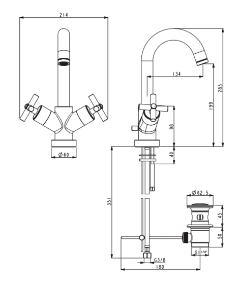 Высота смесителя (мм): 285
