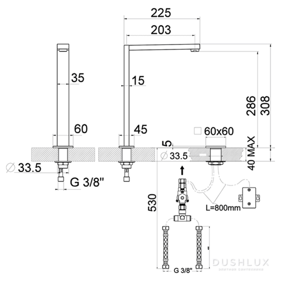Высота смесителя (мм): 286