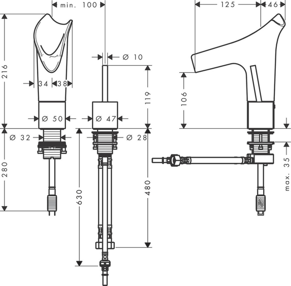 Высота смесителя (мм): 216