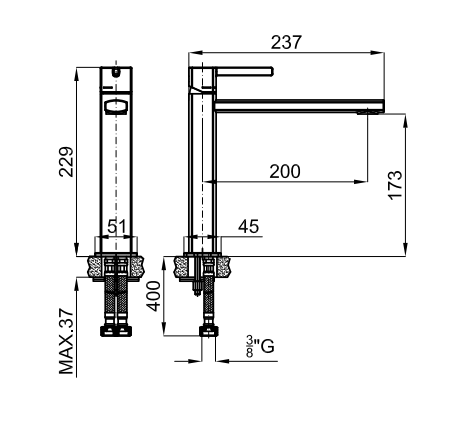 Высокий однорычажный смеситель 229 мм для раковины с керамическим картриджем ᴓ 25 мм. Подключение 3/8". длина шлангов 400 мм, с аэратором "plus". Пропускная способность при давлении 3 бара 5 л/мин.