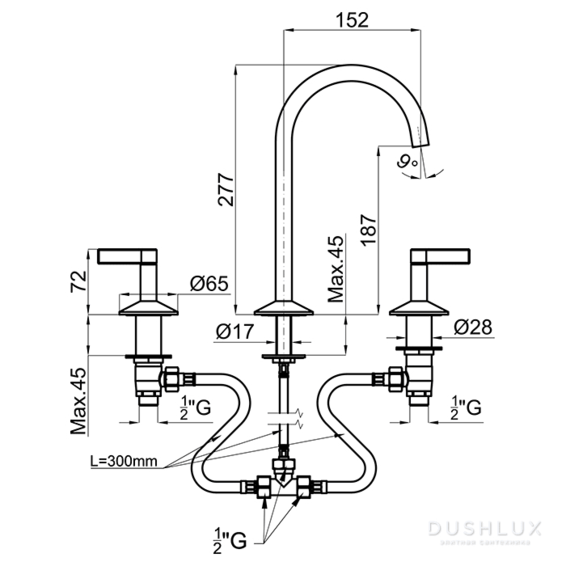 Смеситель для раковины на 3 отверстия с керамическим картриджем. Подключение 1/2", без клапана слива. Пропускная способность при 3 барах 5л/мин. Есть вариант в цвете золото - арт. 100238531 - цена: 465340 тг.