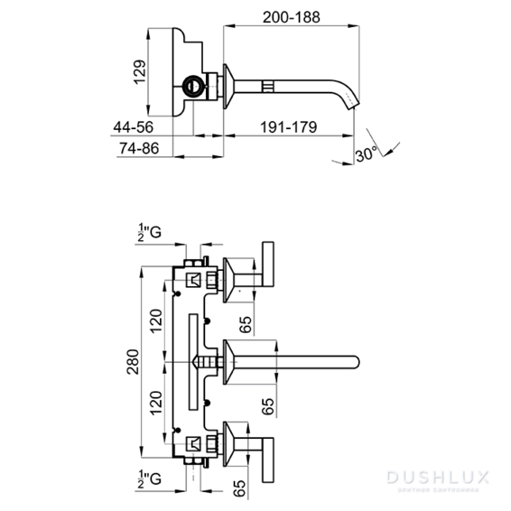 Смеситель скрытого монтажа для раковины на 3 отверстия, настенный с керамическим картриджем. Подключение 1/2", без клапана слива и аэратор "plus". Пропускная способность при 3 барах 5л/мин. Есть вариант в цвете золото - арт. 100238489 - цена: 452620 тг.
