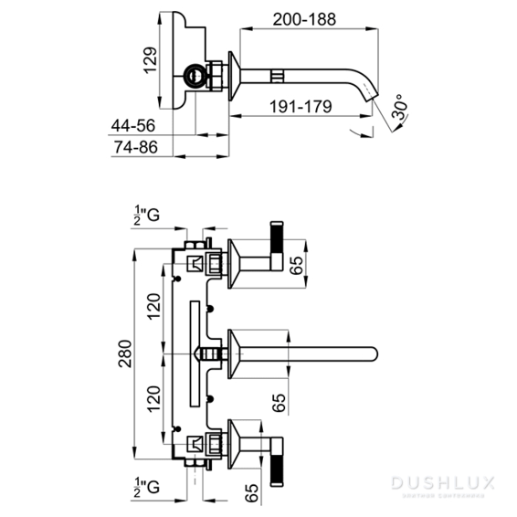 LUXE - смеситель скрытого монтажа для раковины на 3 отверстия, настенный с керамическим картриджем. Подключение 1/2", без клапана слива и аэратор "plus". Пропускная способность при 3 барах 5л/мин. Есть вариант в цвете золото - арт. 100241716 - цена: 580350 тг.